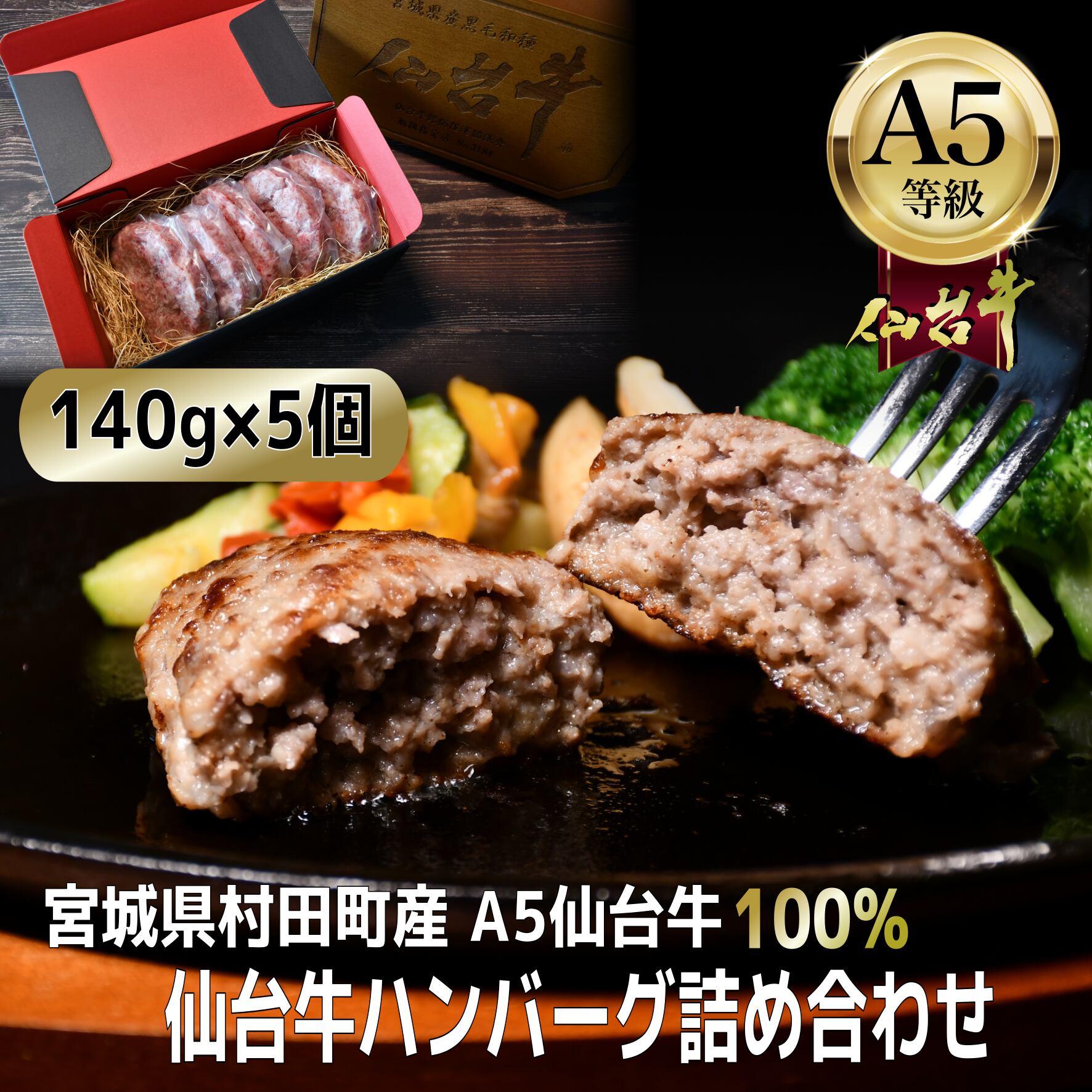 ・A5仙台牛100%プレミアムハンバーグ(140g×2個)