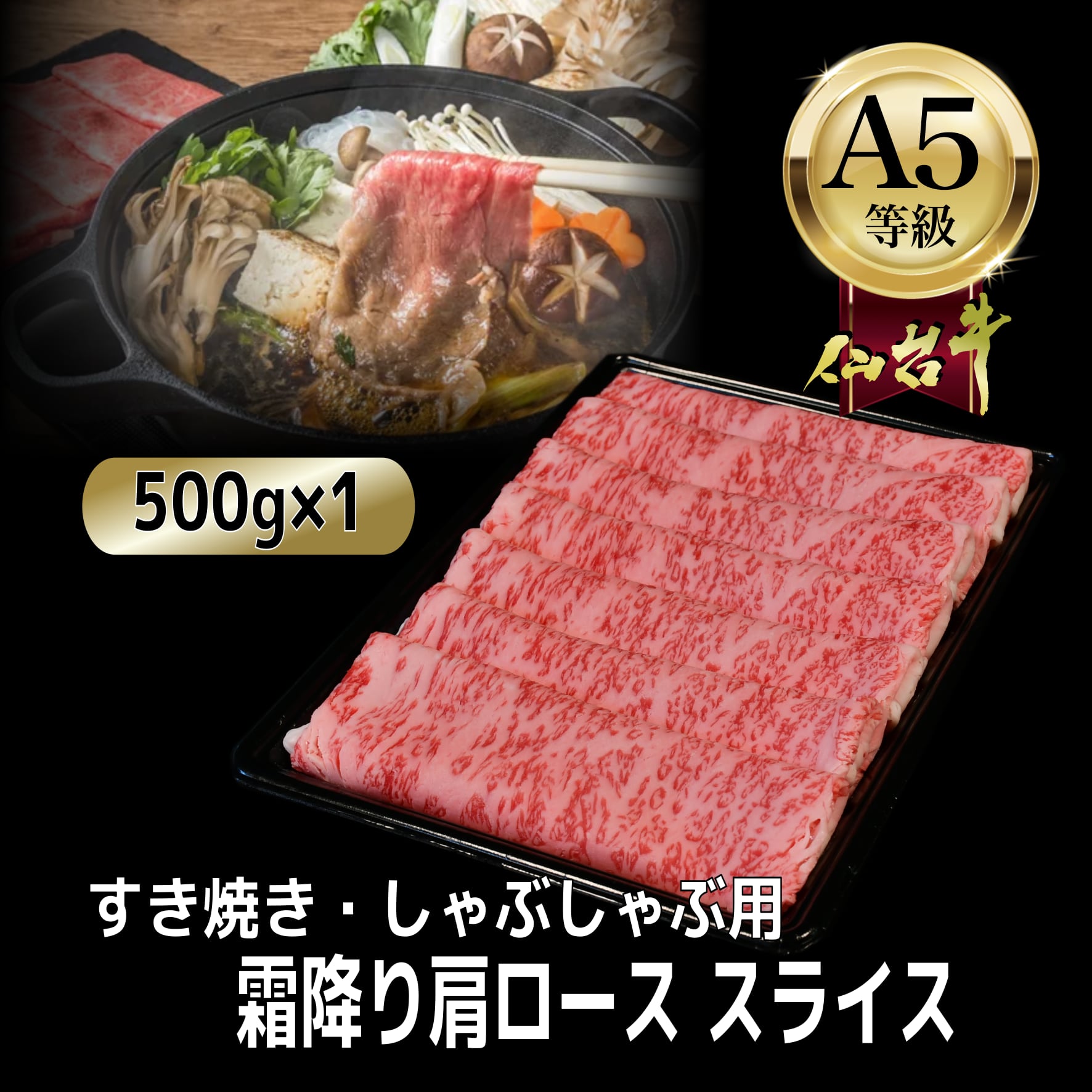 ・A5仙台牛霜降り肩ローススライス 500g×1